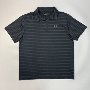 Nike Polo Shirt Mens XXL 2XL Black Gray UA Playoff Striped Quick Dry Performance