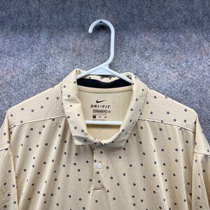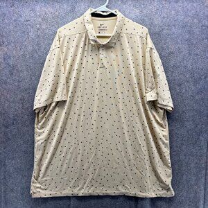 Nike Polo Shirt Mens XXL Yellow Dri Fit Standard Vapor Pinwheel Print Golf Knit
