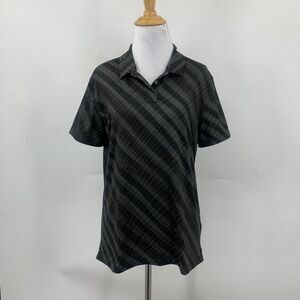 NIKE POLO SHIRT WOMENS M MEDIUM GRAY BLACK ELEMENT HALF ZIP DRI FIT STRIPED GOLF