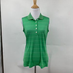 NIKE POLO SHIRT WOMENS S SMALL GREEN STRIPED SLEEVELESS GOLF TOUR PERFORMANCE