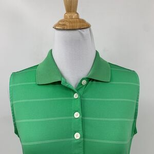 Nike Polo Shirt Womens S Small Green Striped Sleeveless Golf Tour Performance