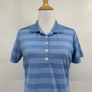 NIKE POLO SHIRT WOMENS S SMALL SKY BLUE GOLF DRI FIT TOUR PERFORMANCE STRIPED
