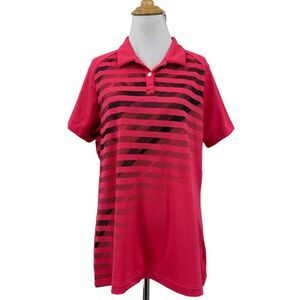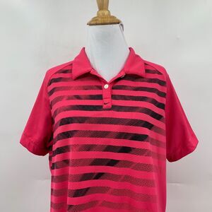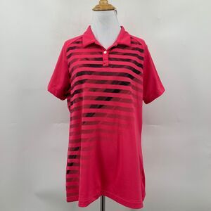 Nike Polo Shirt Womens XL Extra Large Watermelon Pink Golf DriFit Stripe Stretch