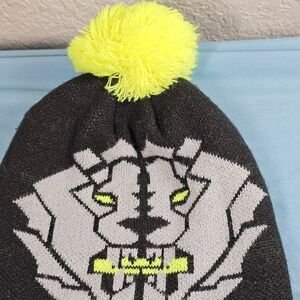 Nike knit Beanie. Black and gray with an almost neon yellow pom pom. Great condition. Comes as shown. Youth size.