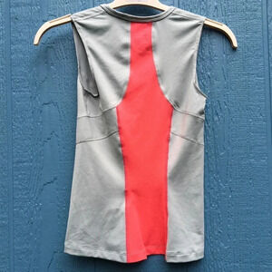 Nike brand Power Tank in Baste Gray and Geranium, size XS. Good used condition with no major flaws. Scoop Neck front with single stripe down the back. Great for the gym, sports, running, working out or your next hiking adventure. Smoke free, pet free home. Ships same or next day