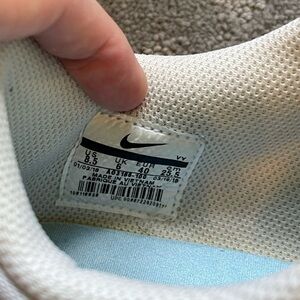 Nike Pre-love OX sneaker. Light gray suede with iridescent swoosh and rainbow sole. Size women’s 8.5. True to size. Good preowned condition.