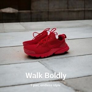 Vibrant red Nike athletic sneakers. Perfect for sports and casual wear. Nike Presto Fly Shoes Red Running Shoes 913966-600 size 4 Y women’s size 5.5 pre-owned good condition