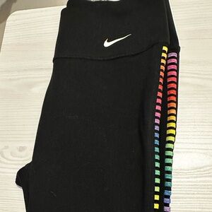 Nike Pride Set – Black Rainbow Stripe Leggings & Sports Bra