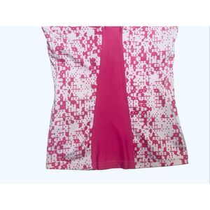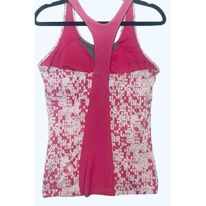 Excellent Nike dry fit fun, top Razorback round neck, geometric, built in bra and print, and signature logo