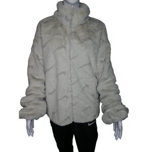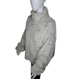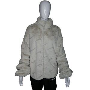 Zip up this roomy, fluffy jacket when temps are dipping for extra-cozy warmth. Faux fur on the outside and a smooth woven lining make it great for layering, while elastic at the cuffs helps keep the cold out.