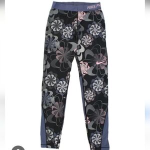 Like New! Nike Pro Big Girls High Waisted Floral leggings.  Stretchy. Elastic waistband. No holes or stains. Comes from a smoke free and pet free home.