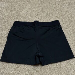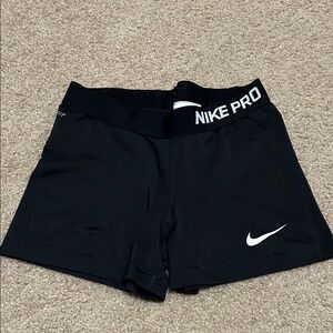 Sleek black Nike Pro shorts. Features logo on waistband and leg. Ideal for active wear.