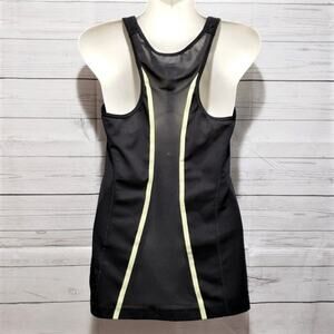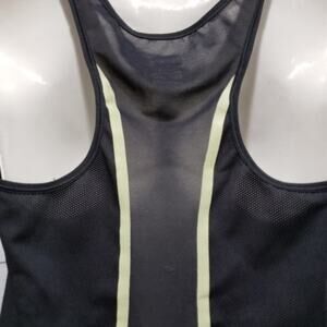 EUC: Sporty, black/green Pro tank top with reflective racerback/Dri-Fit/ made of polyester/spandex by Nike. In excellent pre-owned condition with intact seams and no stains, tears, or holes.