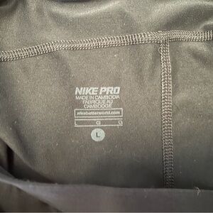 Black Nike Pro shorts with logo detail. Comfortable and stylish. Refer to photos for condition/wear.