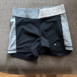 Sleek Nike Pro shorts. Ideal for active wear. Features black and gray design.
