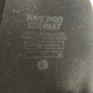 The Nike Pro Combat Compression Pants in men's size large are sleek black athletic base layer tights designed for active occasions. Made from a blended fabric of polyester and spandex, these compression pants feature a pull-on closure, elastic waist, and a 27-inch inseam. With a solid color and a skinny leg style, these lightweight and stretchy pants are easy to care for with machine washable instructions. Perfect for gym training, cross-training, or running, these Nike Pro Combat pants offer a comfortable and supportive fit for the athleisure and sports enthusiast.