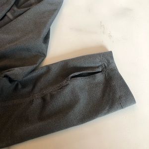 Thin, base layer material. Great for a brisk run. Thumb holes and collar zipper. Washed cold and hung to dry. Fits like a Small.
