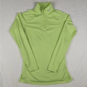 Neon green Nike Pro Combat pullover. Features a quarter-zip design with a silver nike logo.