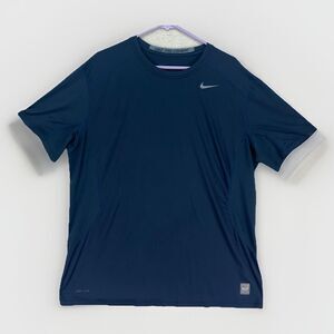 Nike Pro Combat Shirt Mens 2XL XXL Navy Blue Fitted Dri Fit Short Sleeve