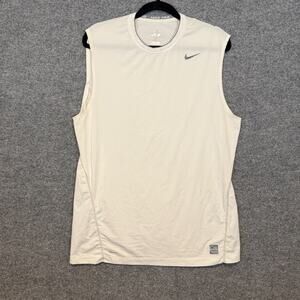 Nike Pro Combat Shirt Mens XL White Fitted Sleeveless Tank Top Swoosh Athleisure