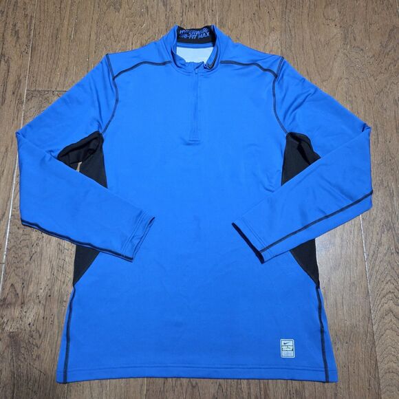 Nike Pro Combat Training Top Mens Large Hyperwarm Dri-FIT Max 1/4 Zip Blue