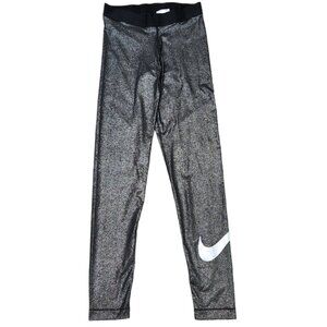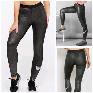 Nike Pro Cool Tights Sparkle Black Metallic Silver Size S