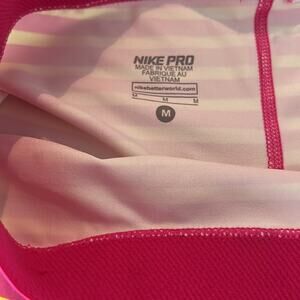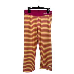 Nike Pro Crop Leggings Pink yellow Stripe Size Medium 10/12 Inseam 17”