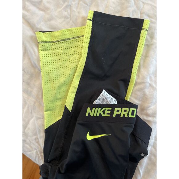 Nike Pro Cropped Leggings w/ Yellow Mesh - XS