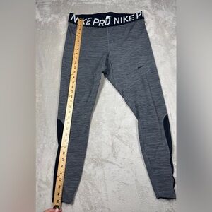 Nike Pro Dri Fit Women’s Heather Grey Spellout Waistband Ankle Leggings