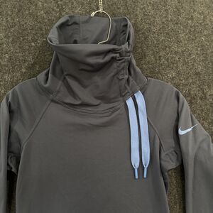 Nike Pro Dri-FIT Hoodie Womens Small Gray Blue Funnel Neck Training 485381-437