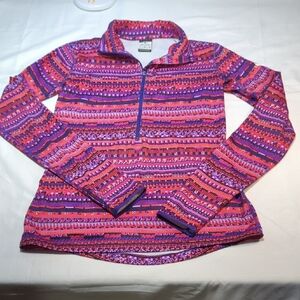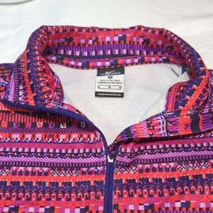 Nike Pro Dri-FIT with a multicolor design. Features a quarter-zip style. This thing is amazing. bright colorful quarter zip size medium Nike pro Dri-Fit has holes in the sleeves for your thumbs to come through. very cool bright piece.