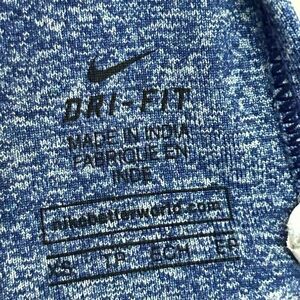 Nike Pro Dri-FIT sports bra in heather navy blue, size XS. Features moisture-wicking Dri-FIT fabric, racerback design, and an elastic Nike Pro band for a secure, comfortable fit. Perfect for gym workouts, yoga, or running. Excellent preowned condition, no flaws.
