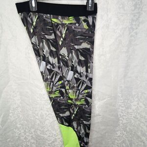 Nike Pro Dri-Fit Capri Athletic Leggings Compress Black White Neon Yellow Size M