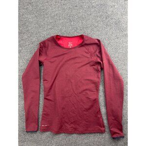 Nike Pro Dri-Fit Shirt Women's Medium Red Long Sleeve Raglan Crew Neck Stretch