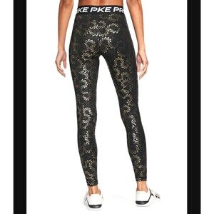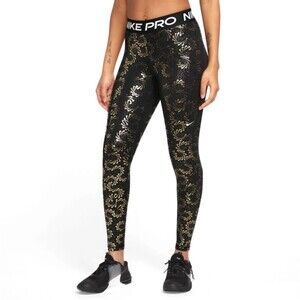 Nike Pro Dri-Fit Women’s 3X Leggings Black Metallic Gold Foil Logo AOP Mid Rise