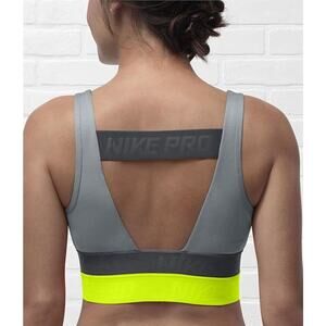 Nike Pro Gray Black Florescent Yellow Sports Bra