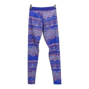 Look stylish and comfortable with these Nike Pro Hyperwarm leggings in a beautiful blue digital Nordic print. Made for women, these leggings are size small and feature a compression style for added support during workouts. The brand is Nike, a leading name in athletic apparel. The leggings are pre-owned, but still in great condition.