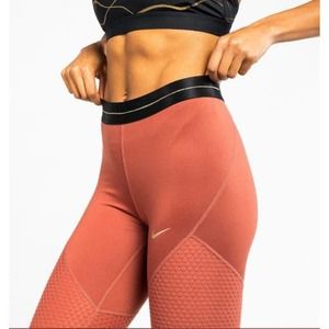 Nike Pro Icon Clash Women's Leggings Claystone Red/Metallic Gold Large