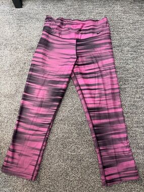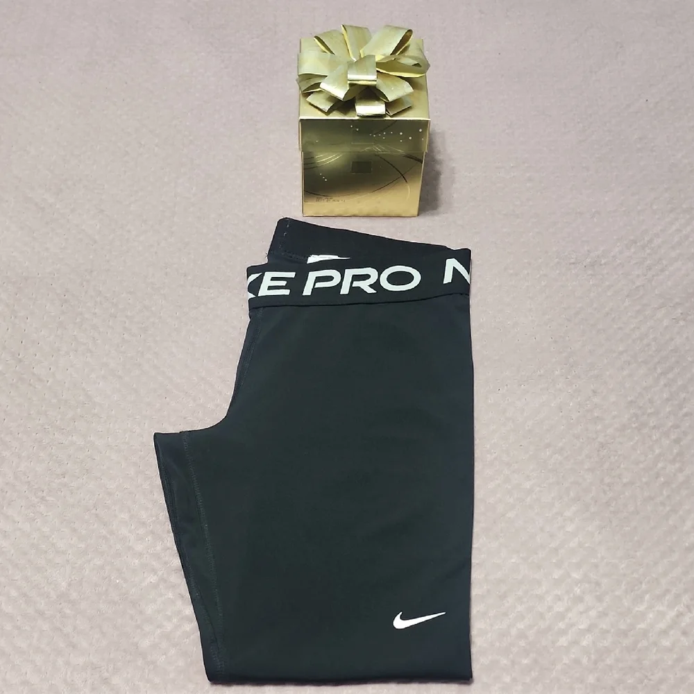 Black Nike Pro Mid-Rise Mesh leggings. Fully enclosed spandex except lower calves are mesh. Large but fit like a medium. Good condition.