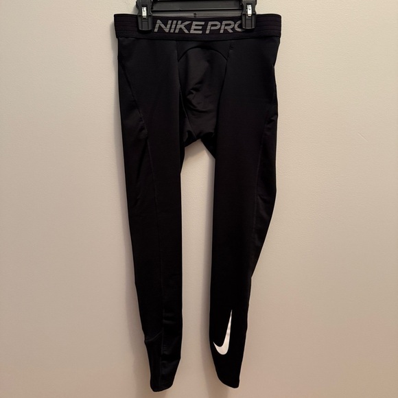 Nike Pro Men’s Leggings Black with White Logo Size M