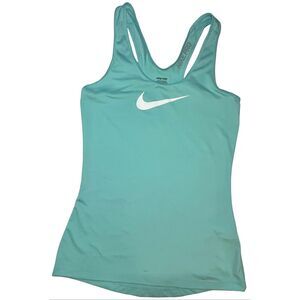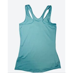 Super cute teal running top scoop neck tight silhouette fit, mesh on back racer, back outline, and signature embossed logo