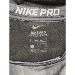 Nike Pro Shirt Men's L Black Gray Long Sleeve Hyperwarm Fitted Stretch Geometric