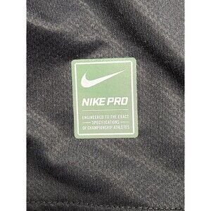 The Nike Pro Shirt for men in size L is a black and gray long sleeve top with a geometric pattern, designed for active wear. Made of a blended fabric of polyester and spandex, this shirt features a crew neck pullover style with a stretch fit for increased comfort. It is suitable for activities such as gym training, cross training, and running, making it a versatile and stylish choice for sports enthusiasts. The Nike Pro shirt combines thermal properties with a sporty logo design, embodying both functionality and style in one athletic top.