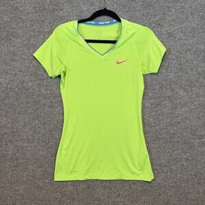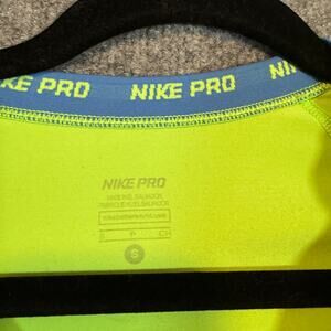 Nike Pro Shirt Women Small Yellow Short Sleeve Tshirt Swoosh Performance Stretch