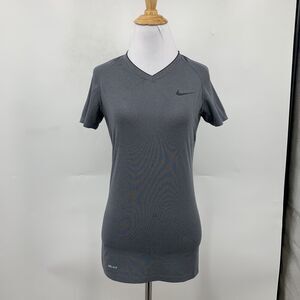 Nike Pro Shirt Womens XS Extra Small Gray Combat Dri Fit V Neck Fitted Tee