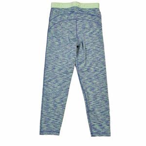 Get ready to feel the comfort and support of the Nike Pro Space-Dyed Cropped Tights in Sapphire Green Glow. These leggings are perfect for cycling, cross training, and CrossFit. The elastic waist and tight fit provide compression and moisture-wicking technology, helping you to feel cool and dry during any activity. The multicolor striped pattern and space theme add a unique touch to your activewear collection. With a size of M and an inseam of 22.5 in, these Nike Pro leggings are made of 82% Polyester and 18% Spandex. Garment care is made easy with machine washable materials.