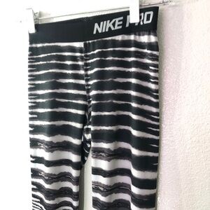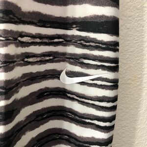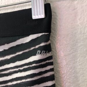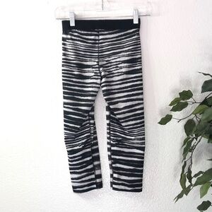 A fun pair of striped cropped leggings. Not technically zebra striped, but that’s what it reminds me of! A thinner, super stretchy material and thick waist band.