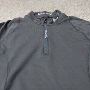 Nike Pro Sweatshirt Mens Small Gray Hyperwarm 1/4 Zip Mock Neck L/S Pullover