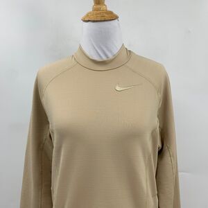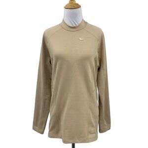 NIKE PRO SWEATSHIRT WOMEN S SMALL CHAMPAGNE FLEECE LINED DRI FIT FITTED MOCK