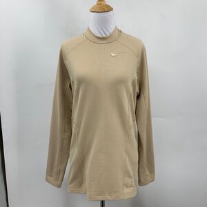 Nike Pro Sweatshirt Women S Small Champagne Fleece Lined Dri Fit Fitted Mock